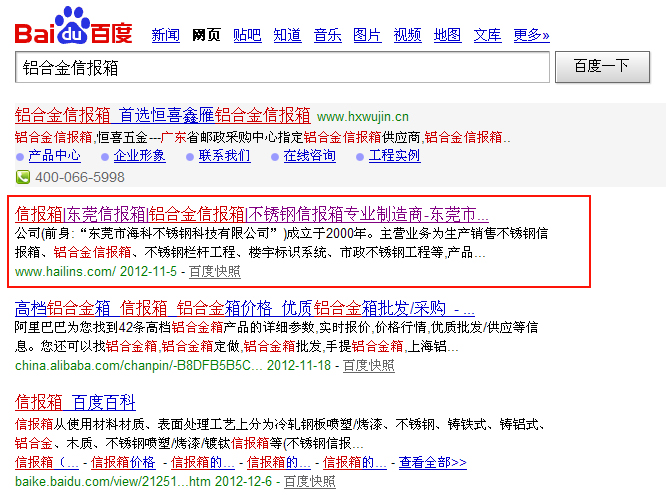 【優化】 海聯晟實業:鋁合金信報箱、東莞信報箱排百度前三