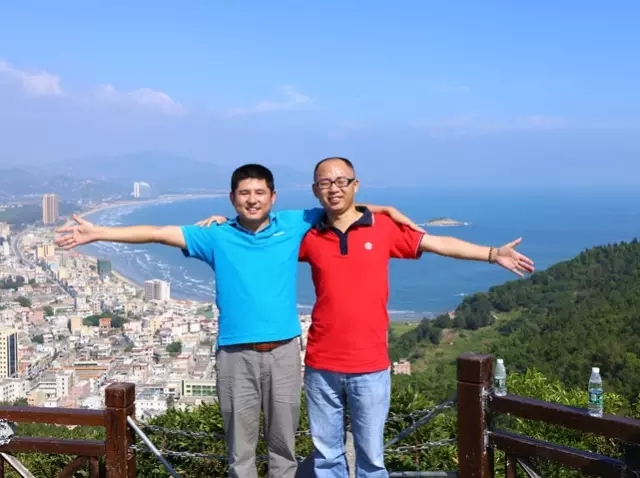 第二天,大家便坐車到觀景臺附近,步行登頂。站在觀景臺,可以看見雙月灣全景,左右兩個半月,據(jù)說一個是風(fēng)平浪靜,一個是波濤洶涌,挺奇特的風(fēng)景,遠(yuǎn)處青山連綿,近處是寬闊的海灣,風(fēng)景盡收眼底。